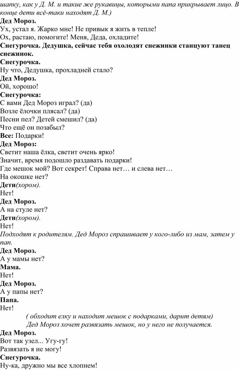 Подходят к родителям. Дед Мороз спрашивает у кого-либо из мам, затем у пап.