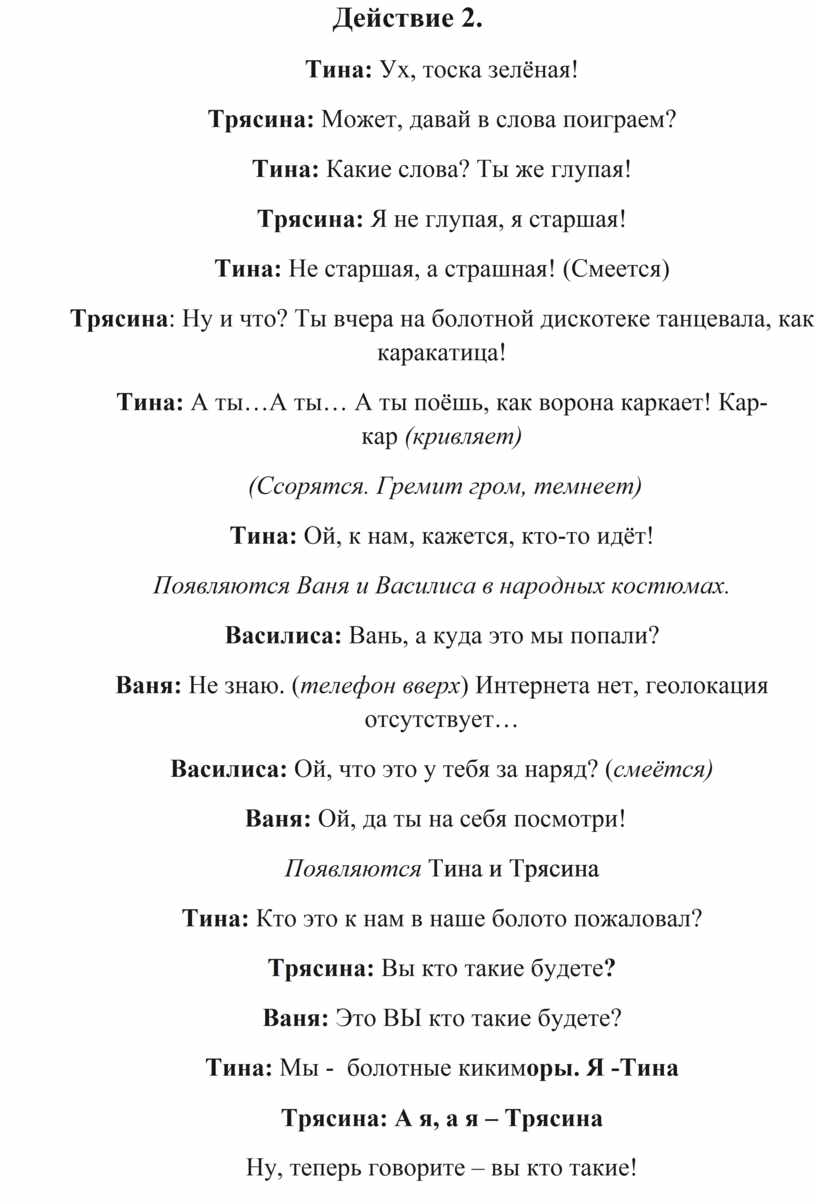 Тина и Трясина: (думают, перебирают на пальцах): таак, Царевна-лягушка? неа, Водяной? да ну, нееет. Русалки, что ли? А может, может Царь морской???