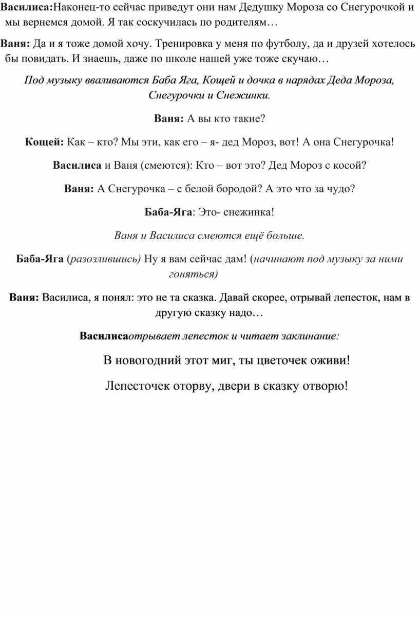 Василиса: Спасибо, Дедушка Мороз, что помог нам домой вернуться. Только вот в цветочке еще несколько лепестков осталось.