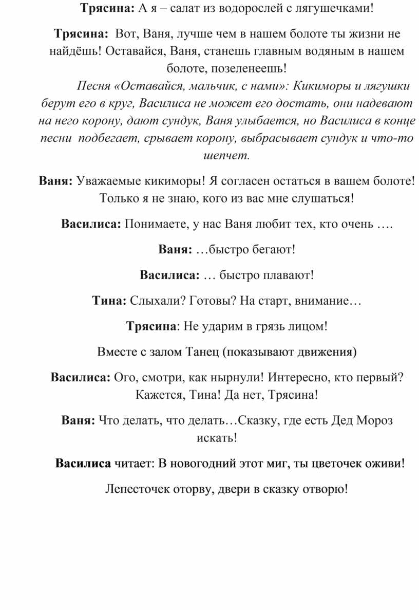 Ваня: Уважаемые кикиморы! Я согласен остаться в вашем болоте! Только я не знаю, кого из вас мне слушаться!