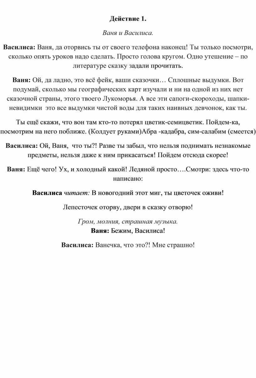 Василиса: Ваня, да оторвись ты от своего телефона наконец! Ты только посмотри, сколько опять уроков надо сделать. Просто голова кругом. Одно утешение – по литературе сказку задали прочитать.