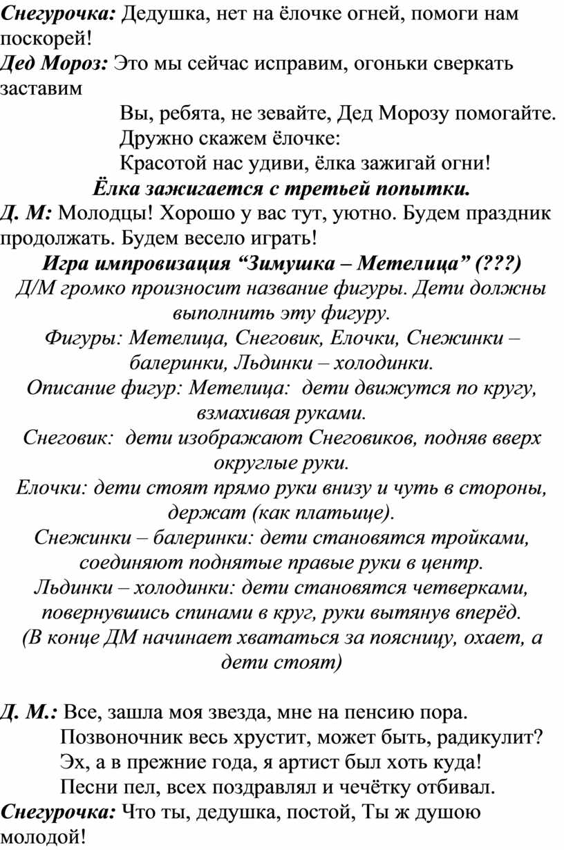 Снегурочка: Дедушка, нет на ёлочке огней, помоги нам поскорей!