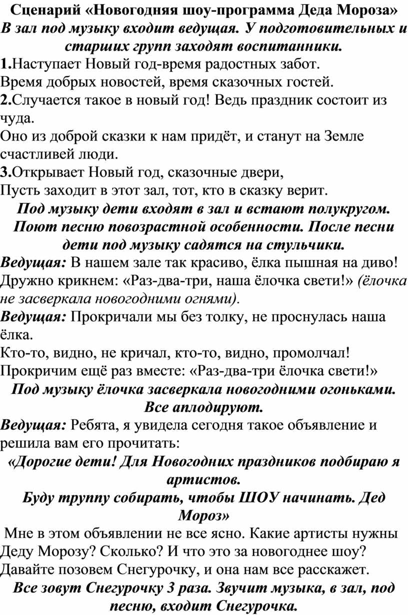 Сценарий «Новогодняя шоу-программа Деда Мороза»