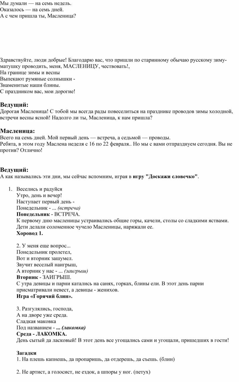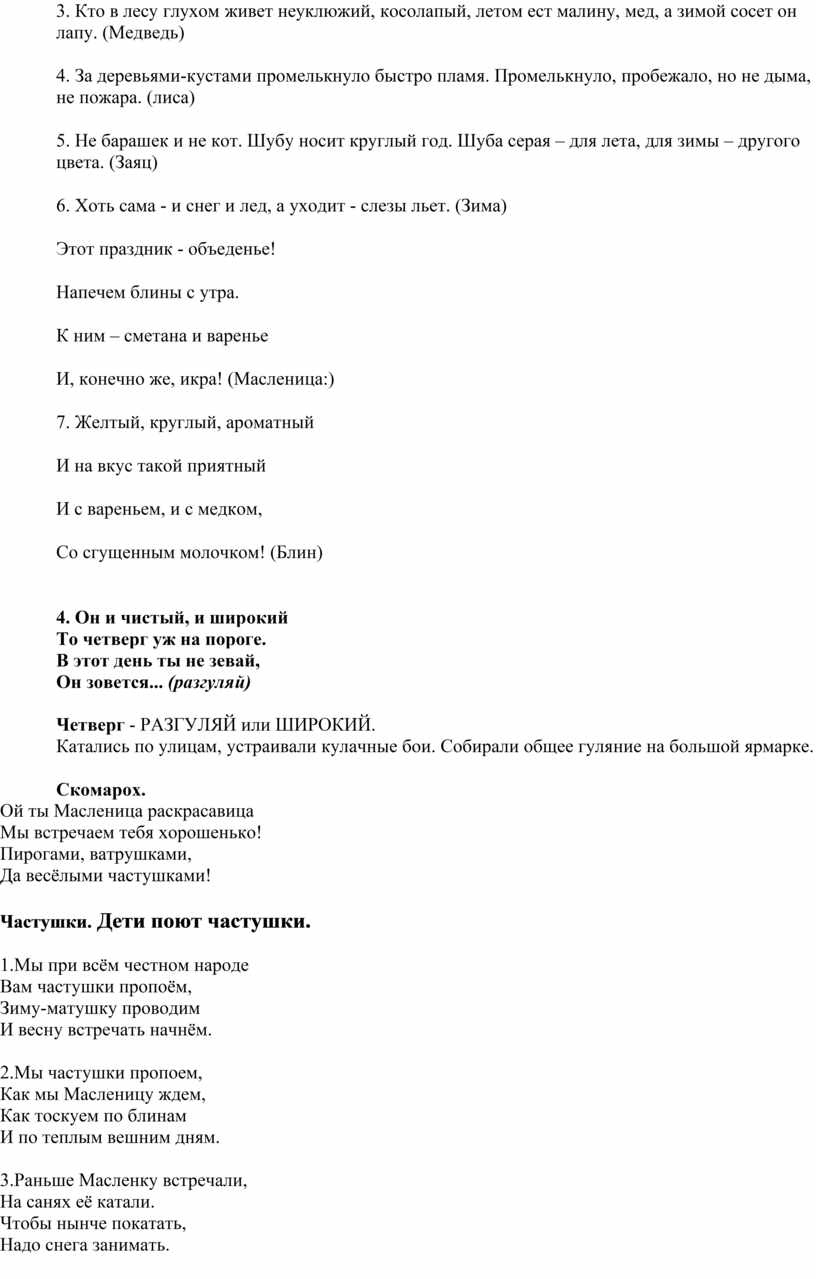 Образовательные: учить понимать и осмысливать традиции русского народа, обобщить их знания о праздновании Масленицы на Руси, о сезонных изменениях в природе, повадках зверей в зимний и весенний период; обогатить словарный запас младших школьников, тренировать умение отгадывать загадки, расширить знания о народном этикете.