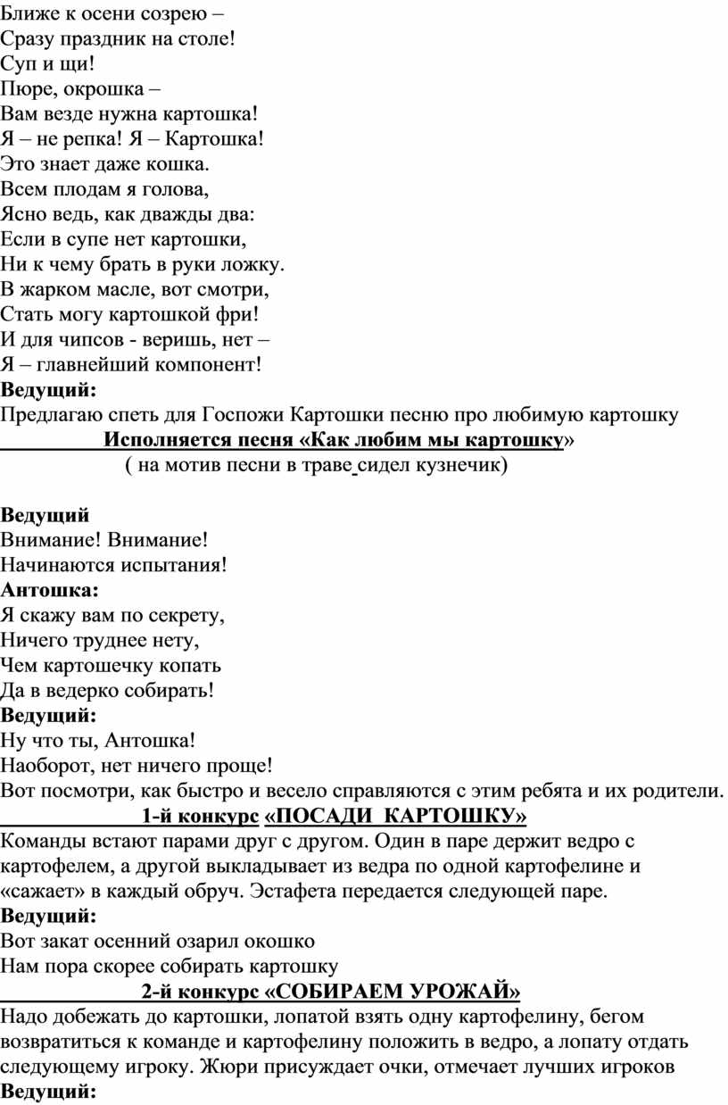 Предлагаю спеть для Госпожи Картошки песню про любимую картошку