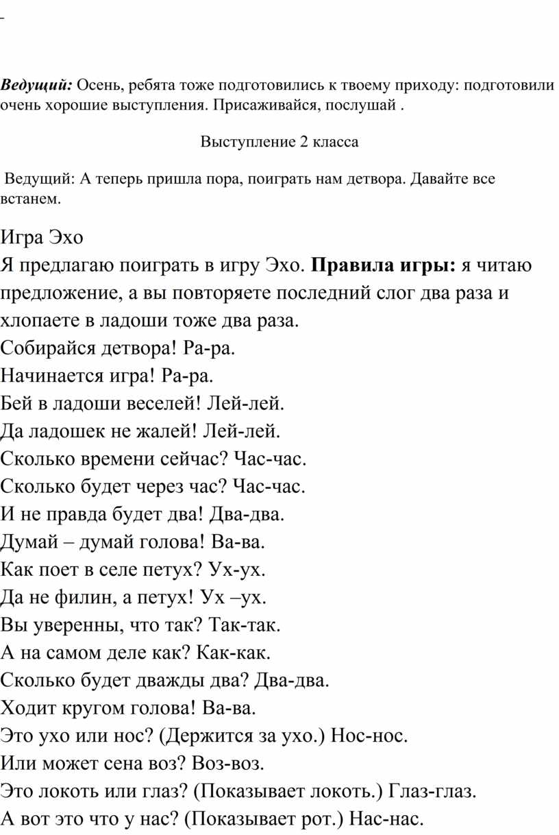 игры: я читаю предложение, а вы повторяете последний слог два раза и