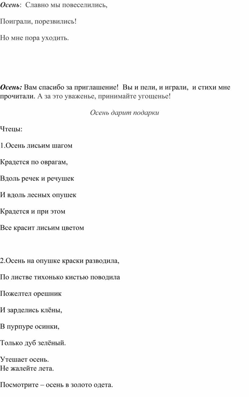 Осень: Молодцы, ребята! Очень мне понравились ваши песни.