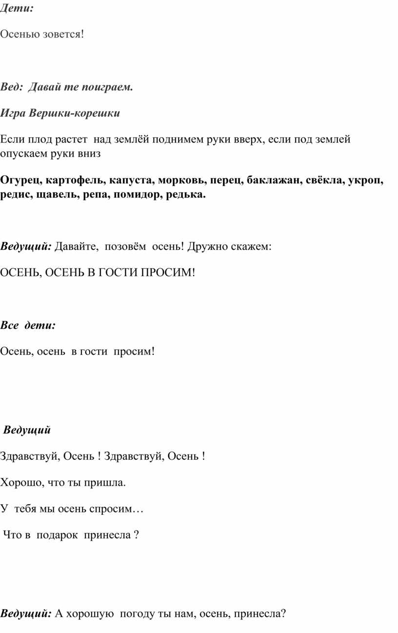 Ведущий: Давайте, позовём осень! Дружно скажем: