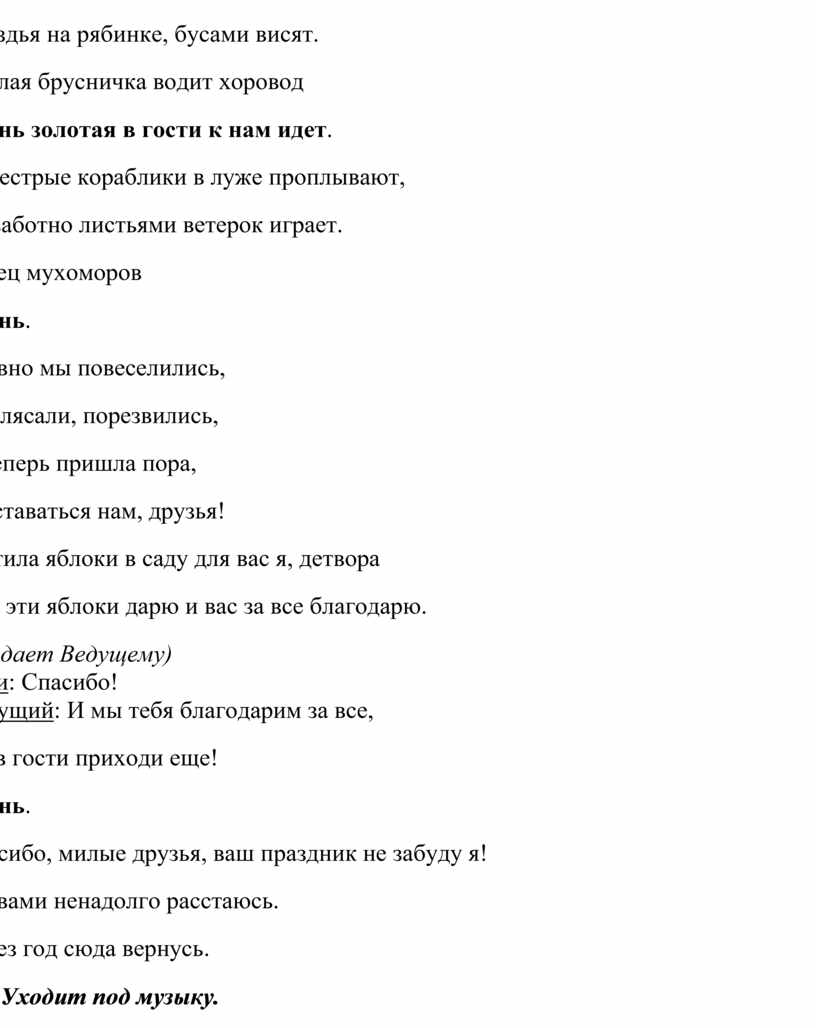 Сценарий осеннего праздника для детей старшей группы детского сада «Золотая осень».