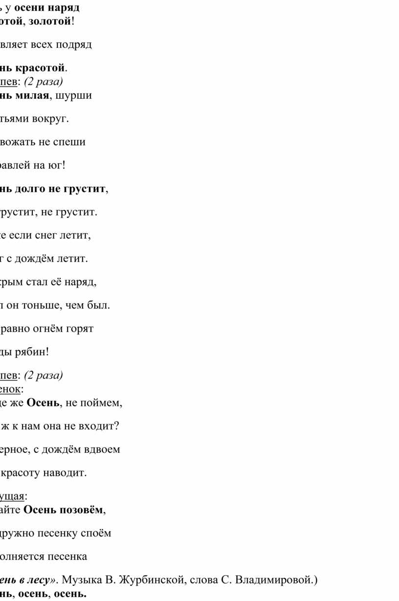 Исполняется песня «Осень милая шурши» (с листиками в рассыпную встают)