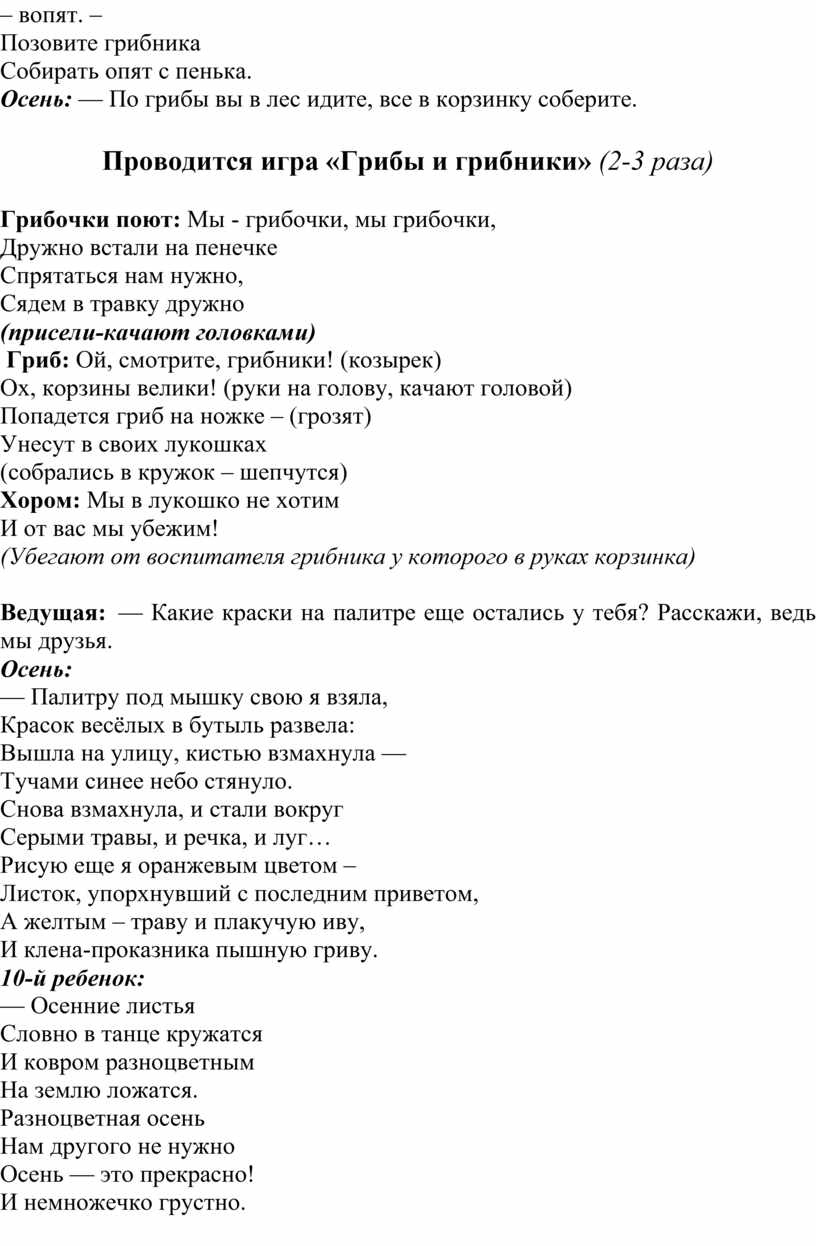 Осень: — По грибы вы в лес идите, все в корзинку соберите.