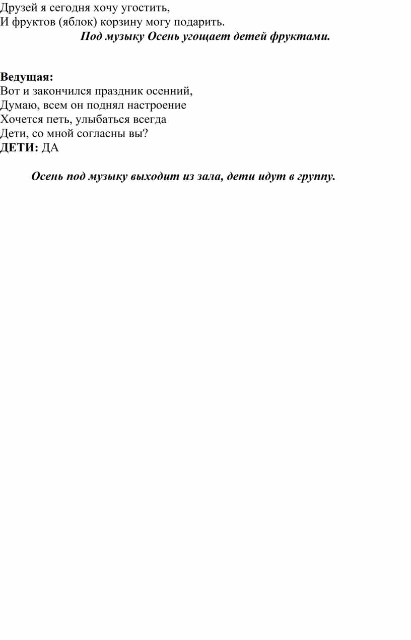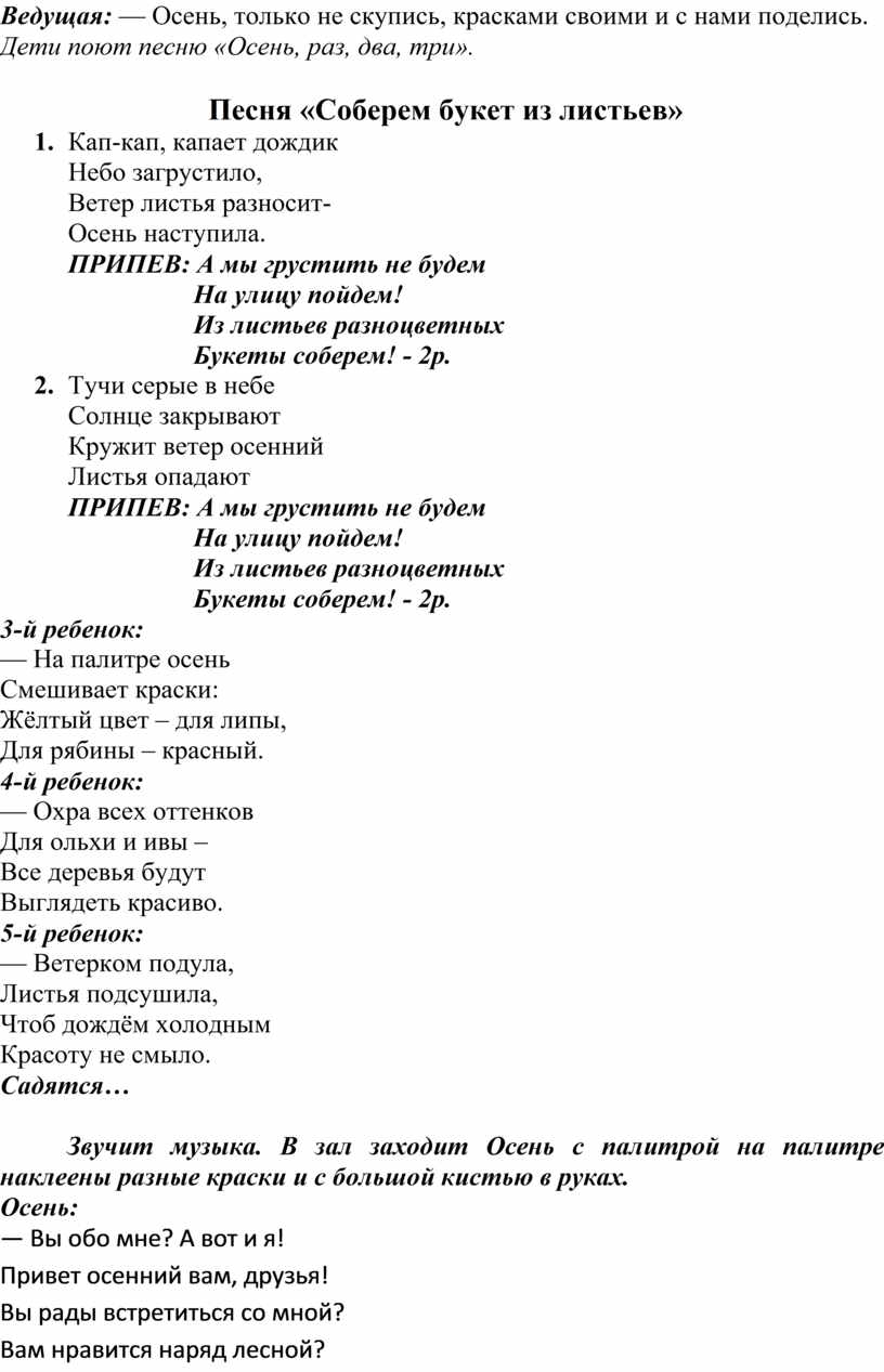 Ведущая: — Осень, только не скупись, красками своими и с нами поделись.