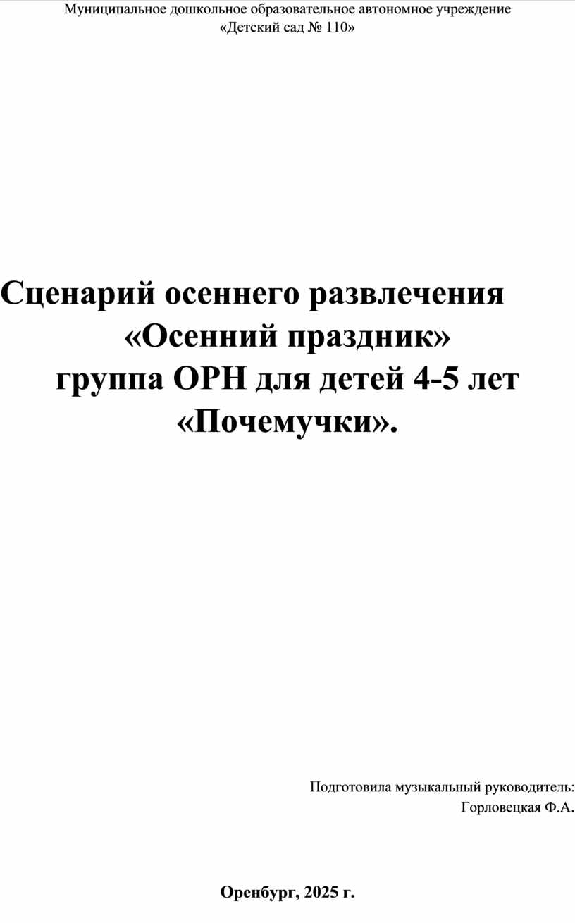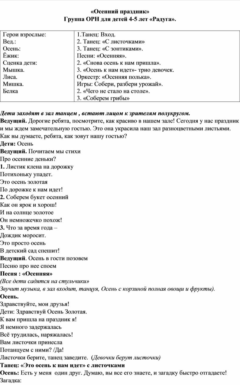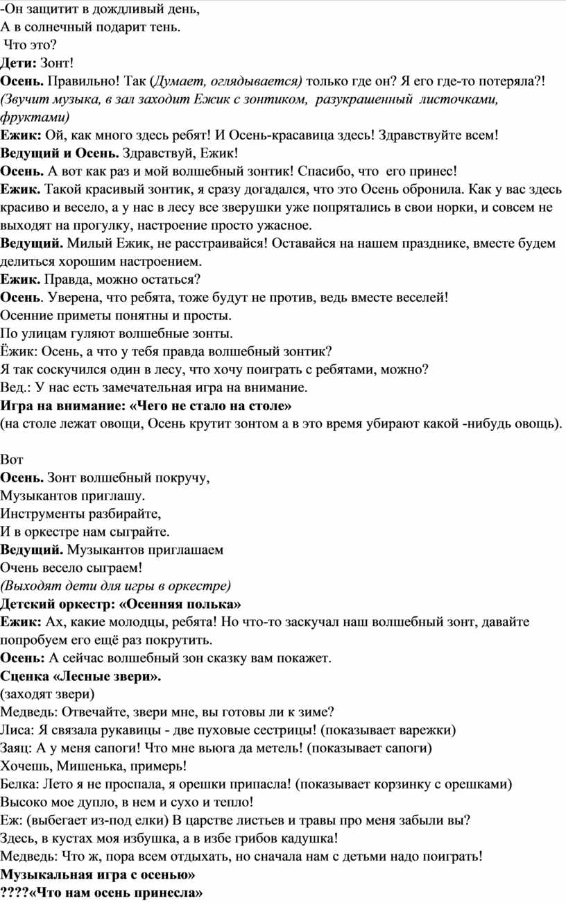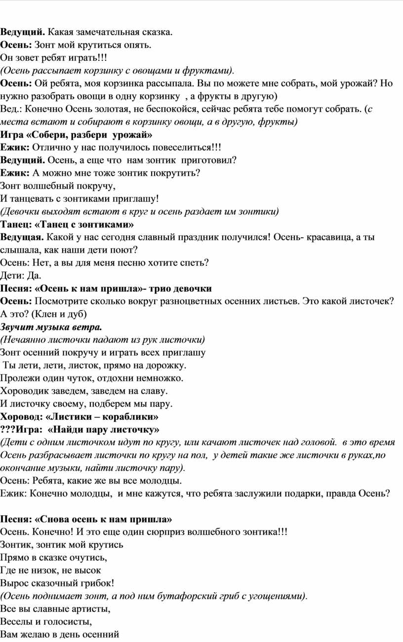 Сценарий осеннего развлечения