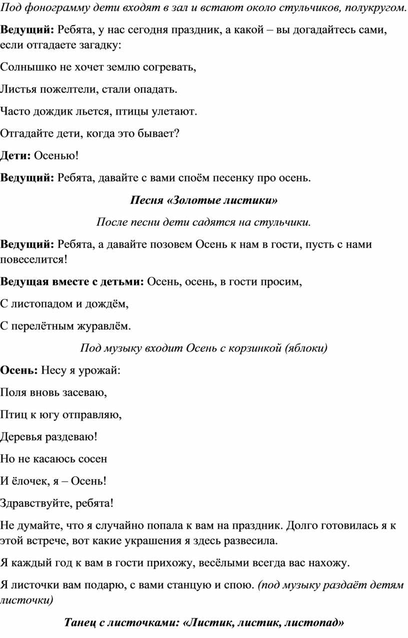 Ведущий: Ребята, а давайте позовем Осень к нам в гости, пусть с нами повеселится!