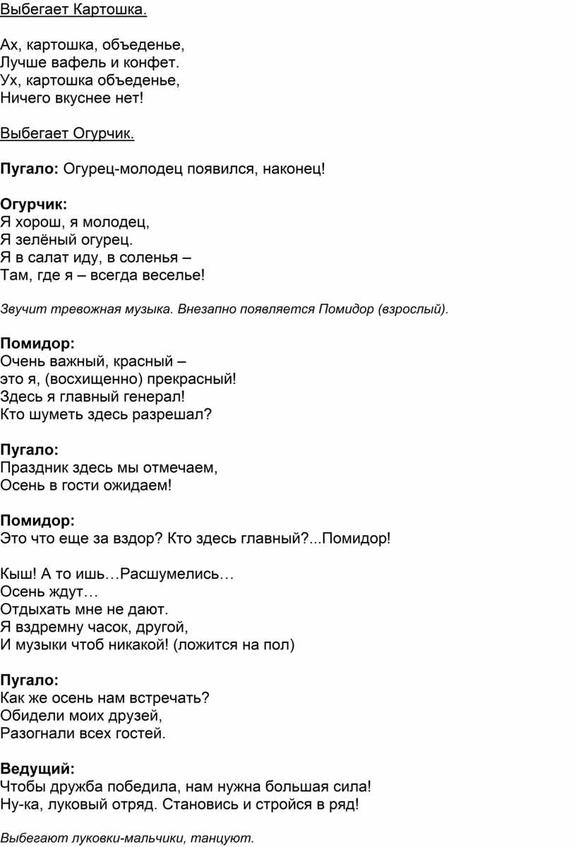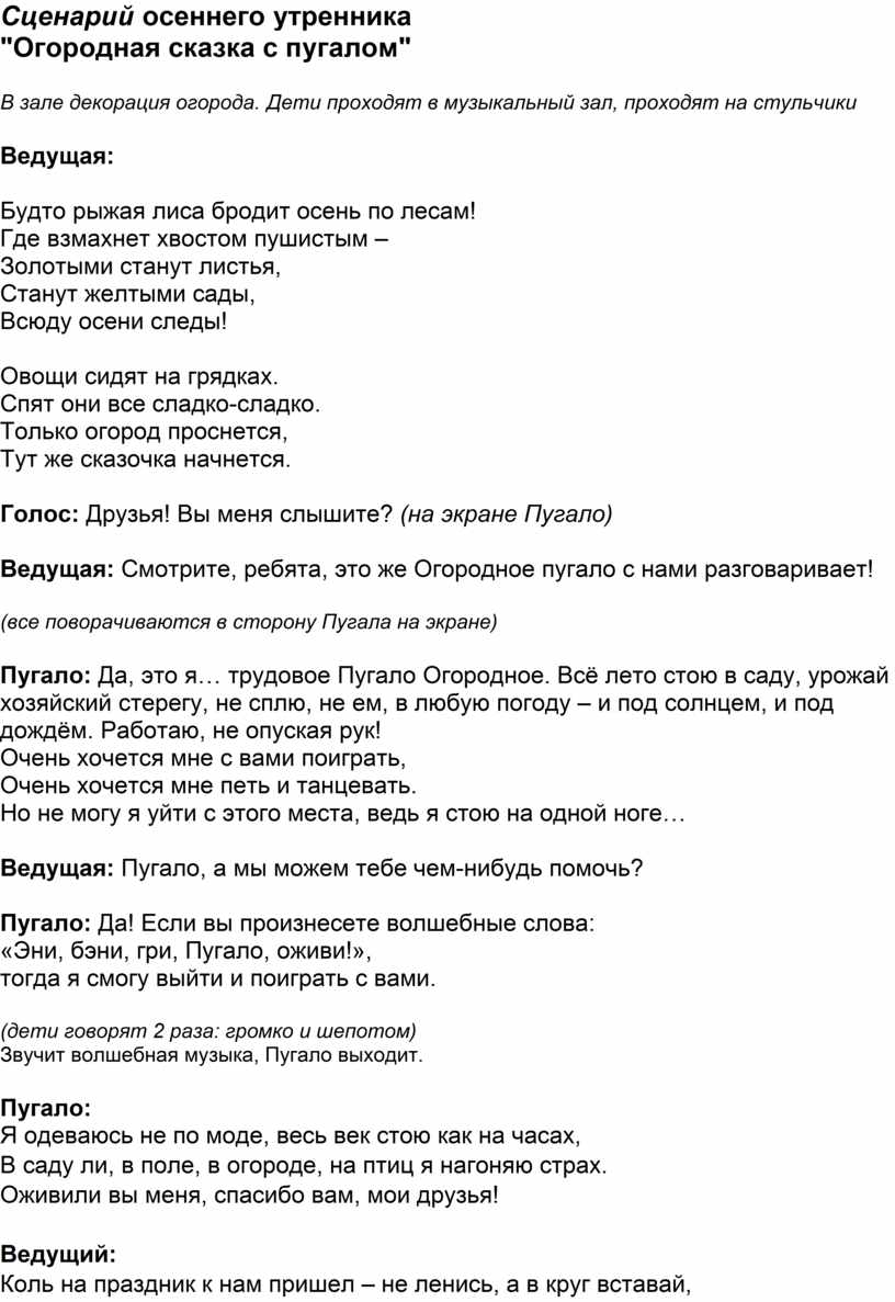 Ведущая: Смотрите, ребята, это же Огородное пугало с нами разговаривает!