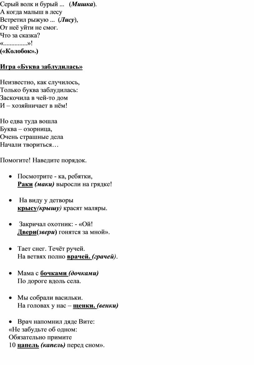 Игра «Буква заблудилась»