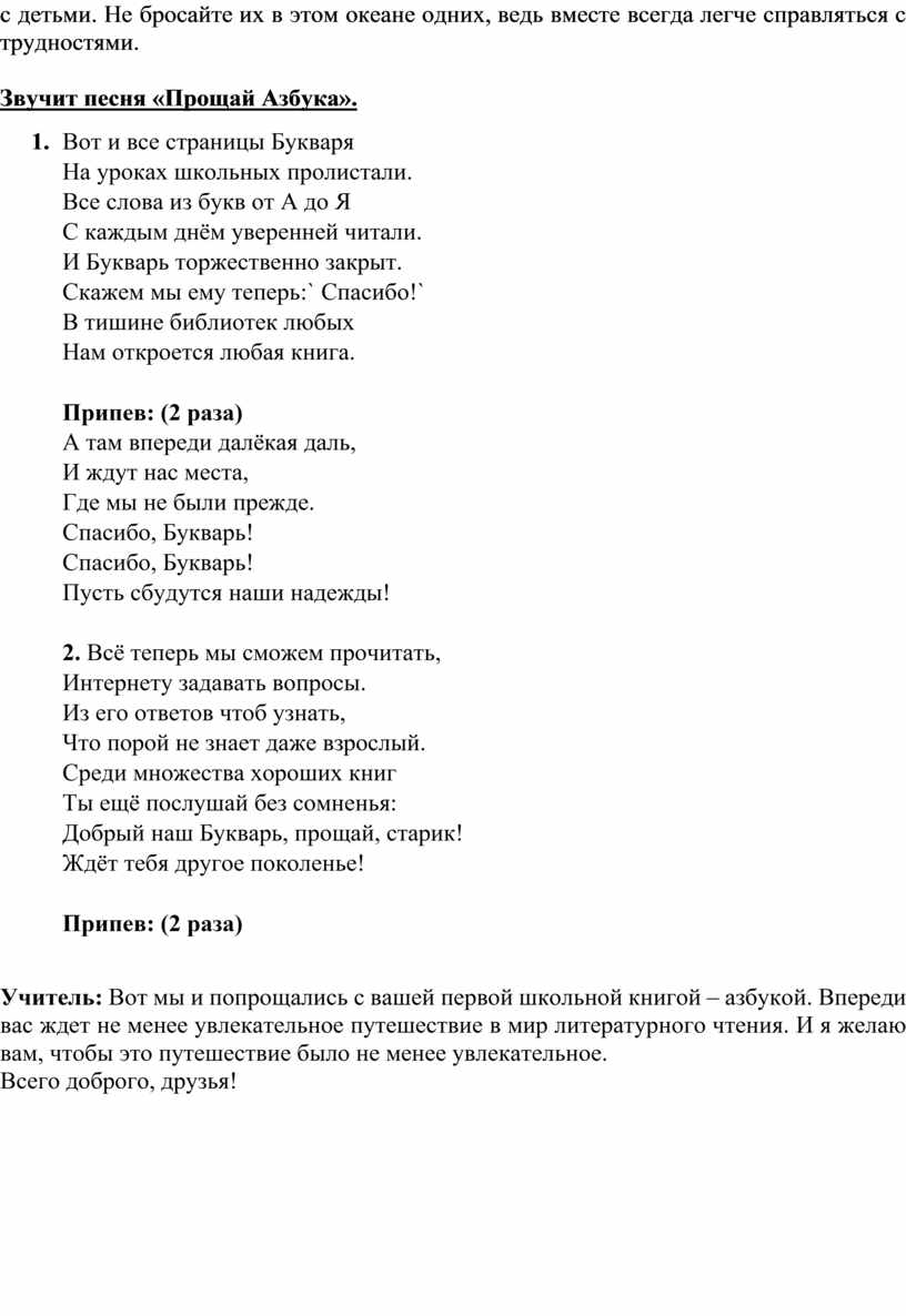 Звучит песня «Прощай Азбука».