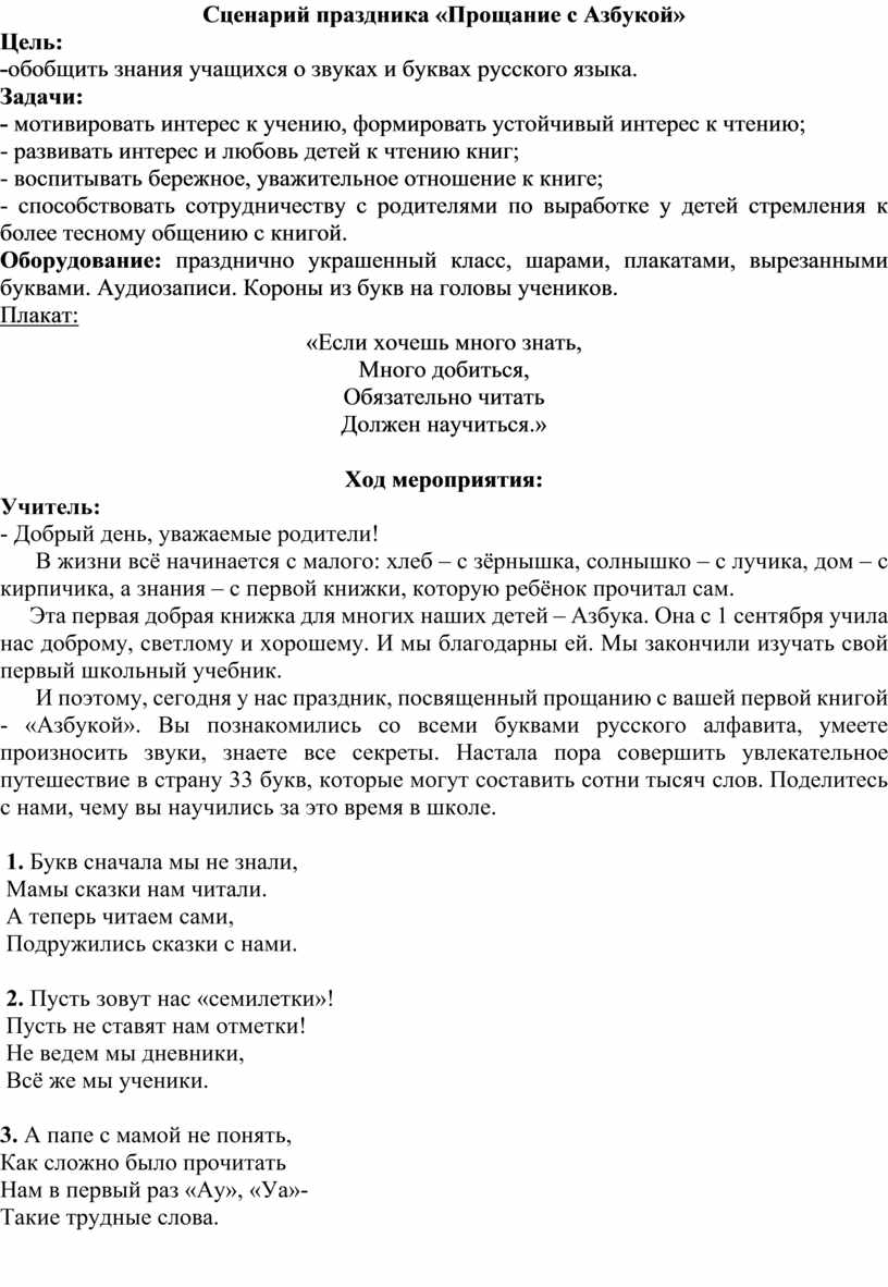 Сценарий праздника «Прощание с Азбукой»