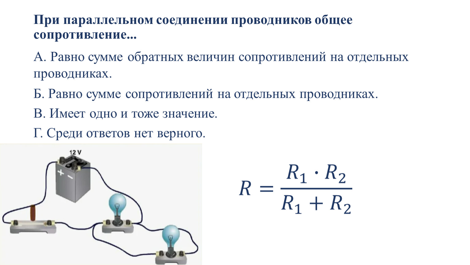 Б. Равно сумме обратных величин сопротивлений на отдельных проводниках.