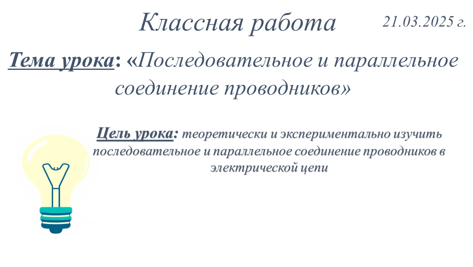 Тема урока: «Последовательное и параллельное соединение проводников»