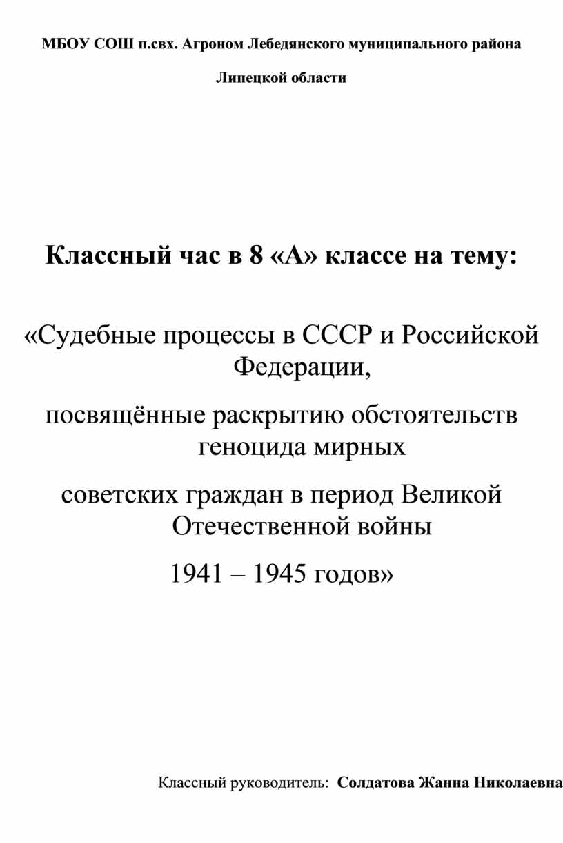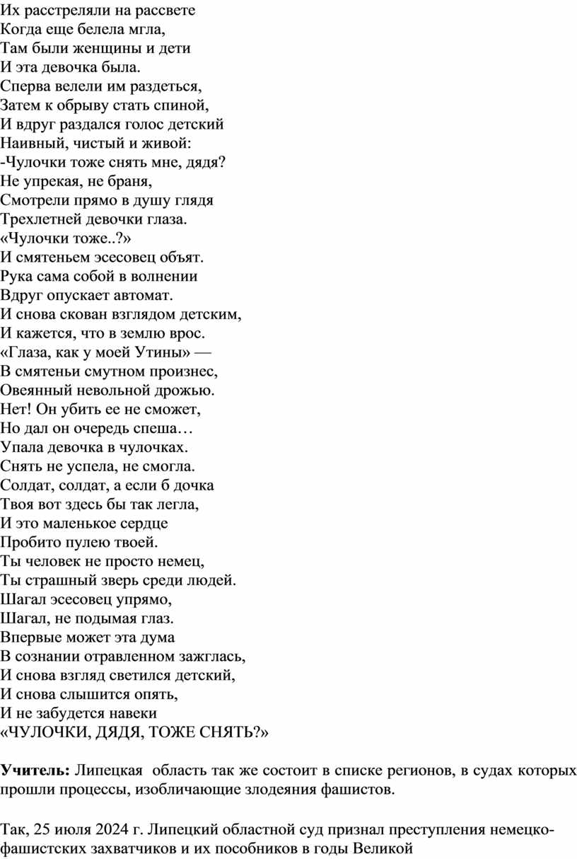 Учитель: Липецкая область так же состоит в списке регионов, в судах которых прошли процессы, изобличающие злодеяния фашистов.