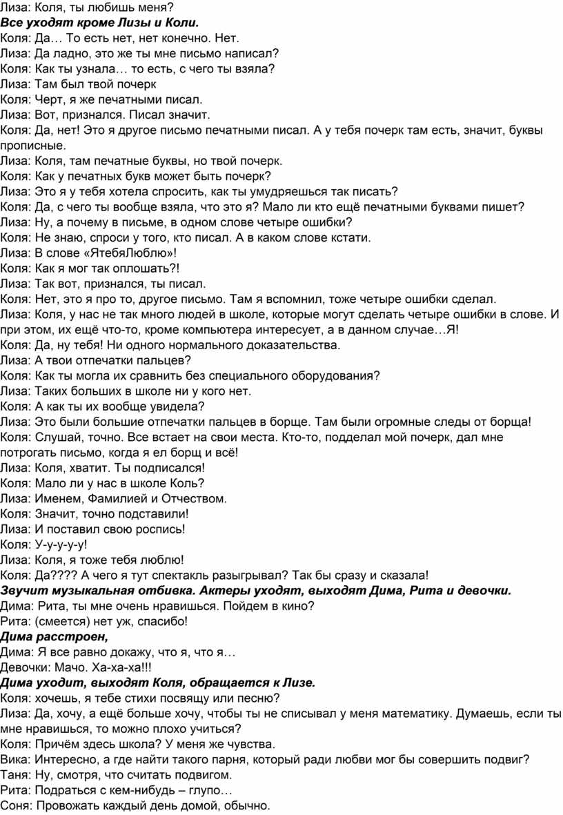 Лиза: Коля, я тоже тебя люблю!