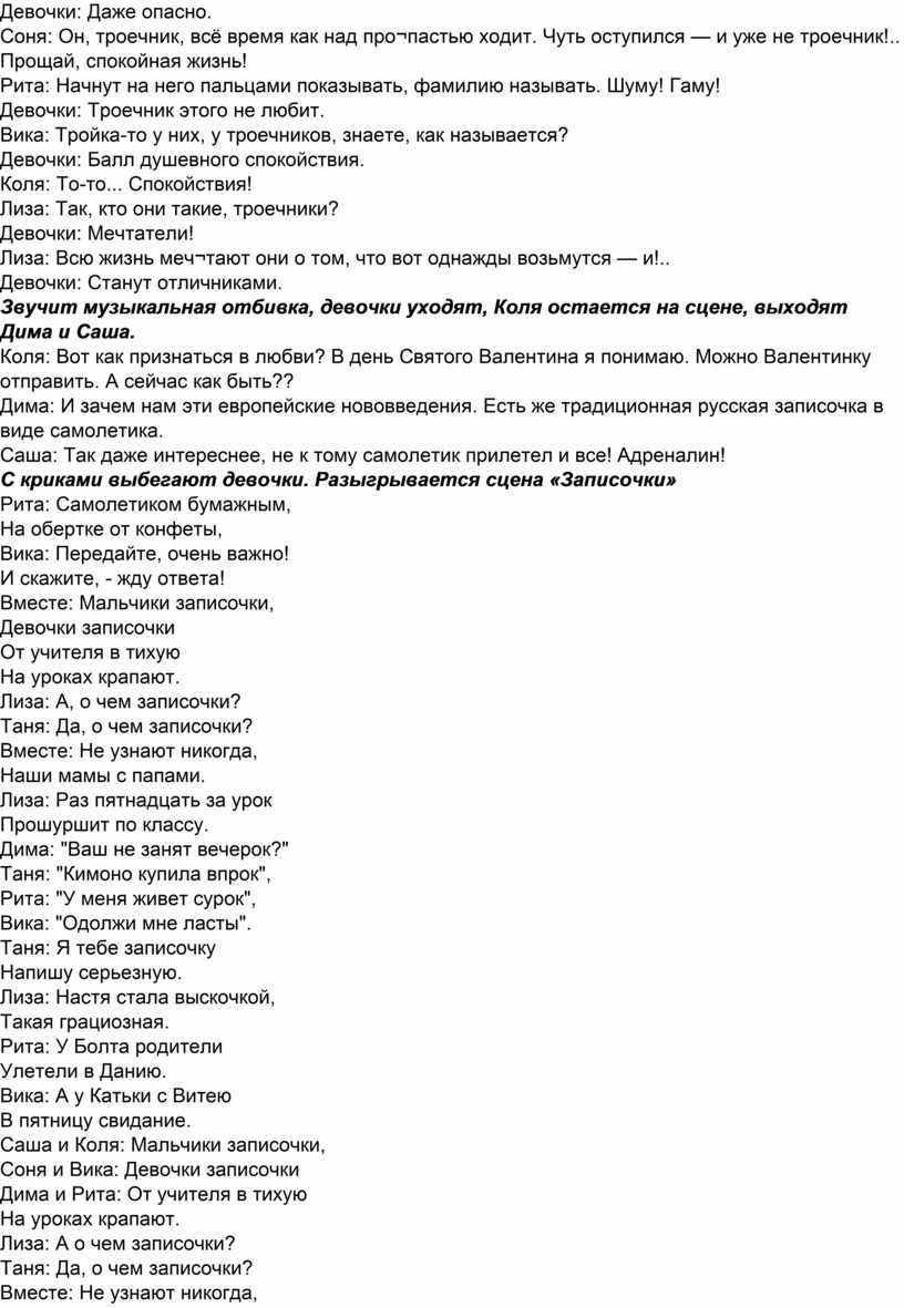 криками: «Девчонки!», за кулисы, через мгновенье выбегают, обсуждая новость, гурьба