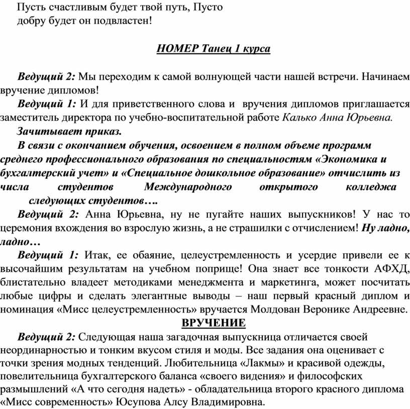 Сценарий церемонии, посвященной выпуску очного отделения