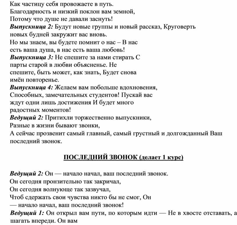 А сейчас прозвенит самый главный, самый грустный и долгожданный Ваш последний звонок.