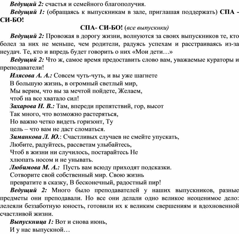 Ведущий 2: Что ж, самое время предоставить слово вам, уважаемые кураторы и преподаватели!