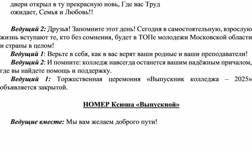Ведущий 1: Торжественная церемония «Выпускник колледжа – 2025» объявляется закрытой.