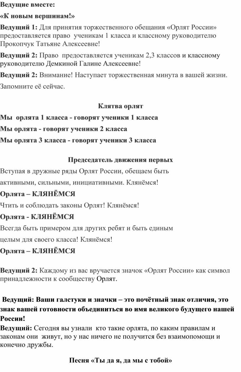 Ведущий 1: Поздравляем вас с гордым званием «Орлята России»!