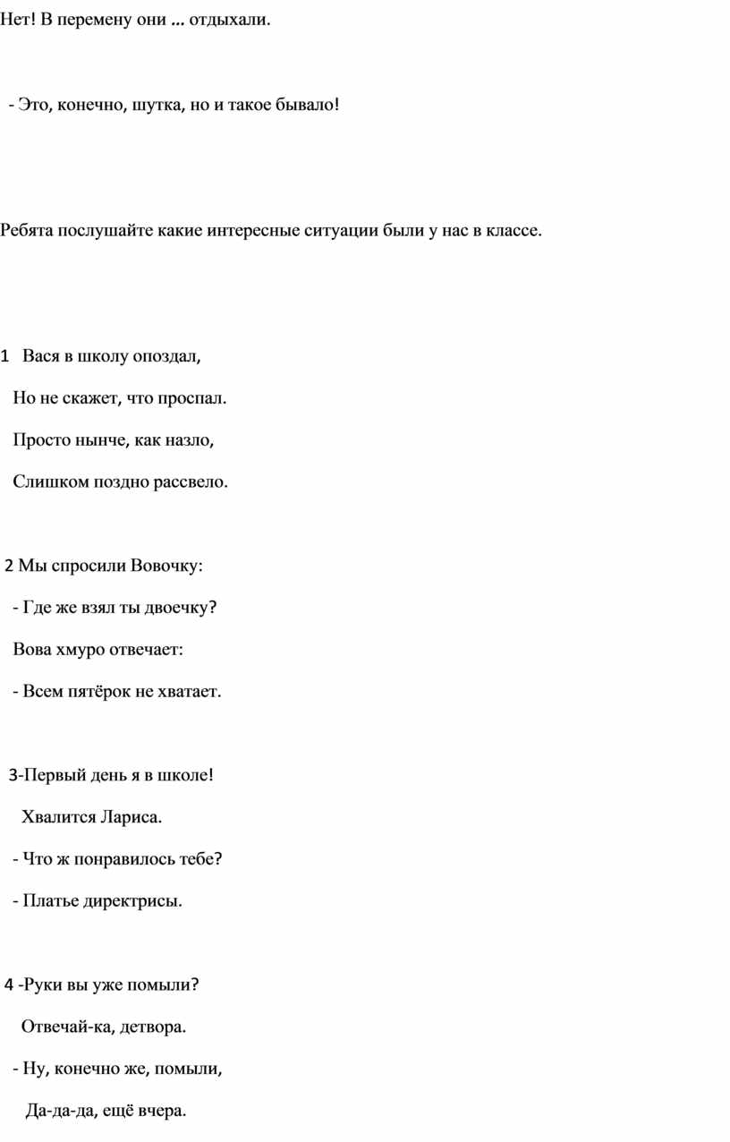 Ребята послушайте какие интересные ситуации были у нас в классе.