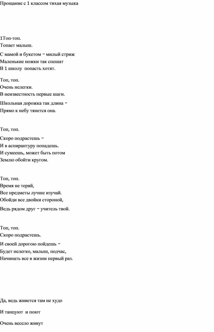 Прощание с 1 классом тихая музыка