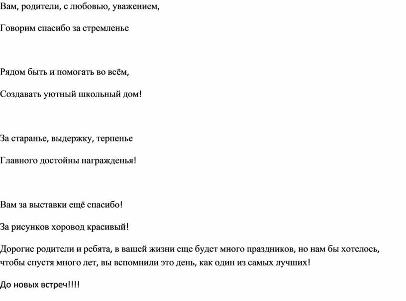 Дорогие родители и ребята, в вашей жизни еще будет много праздников, но нам бы хотелось, чтобы спустя много лет, вы вспомнили это день, как один из самых лучших!