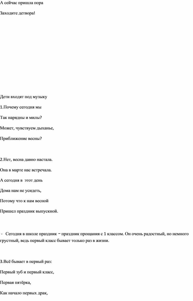 - Сегодня в школе праздник – праздник прощания с 1 классом. Он очень радостный, но немного грустный, ведь первый класс бывает только раз в жизни.