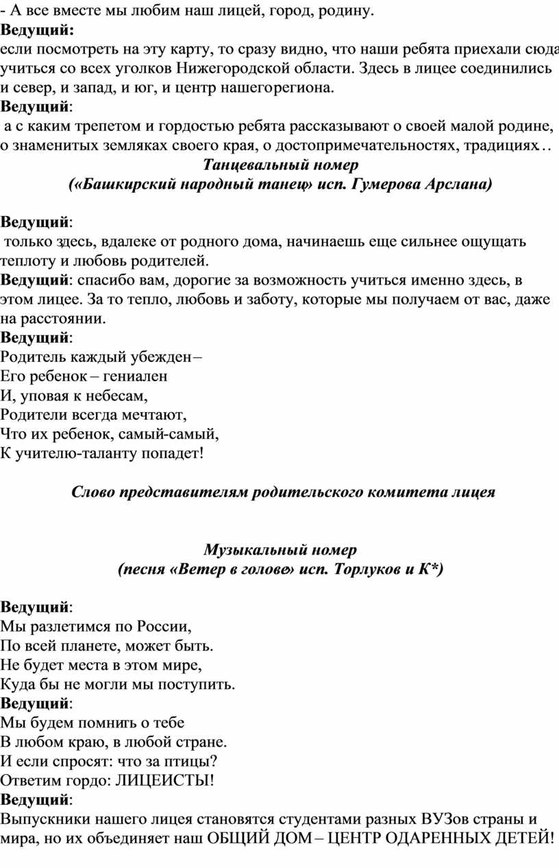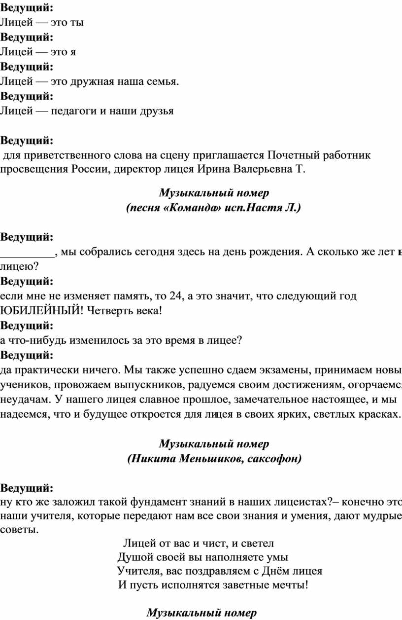 Ведущий: Лицей — это праздник |