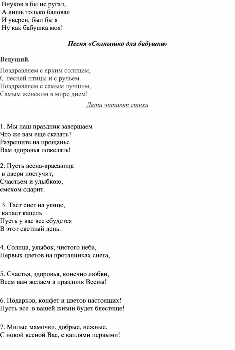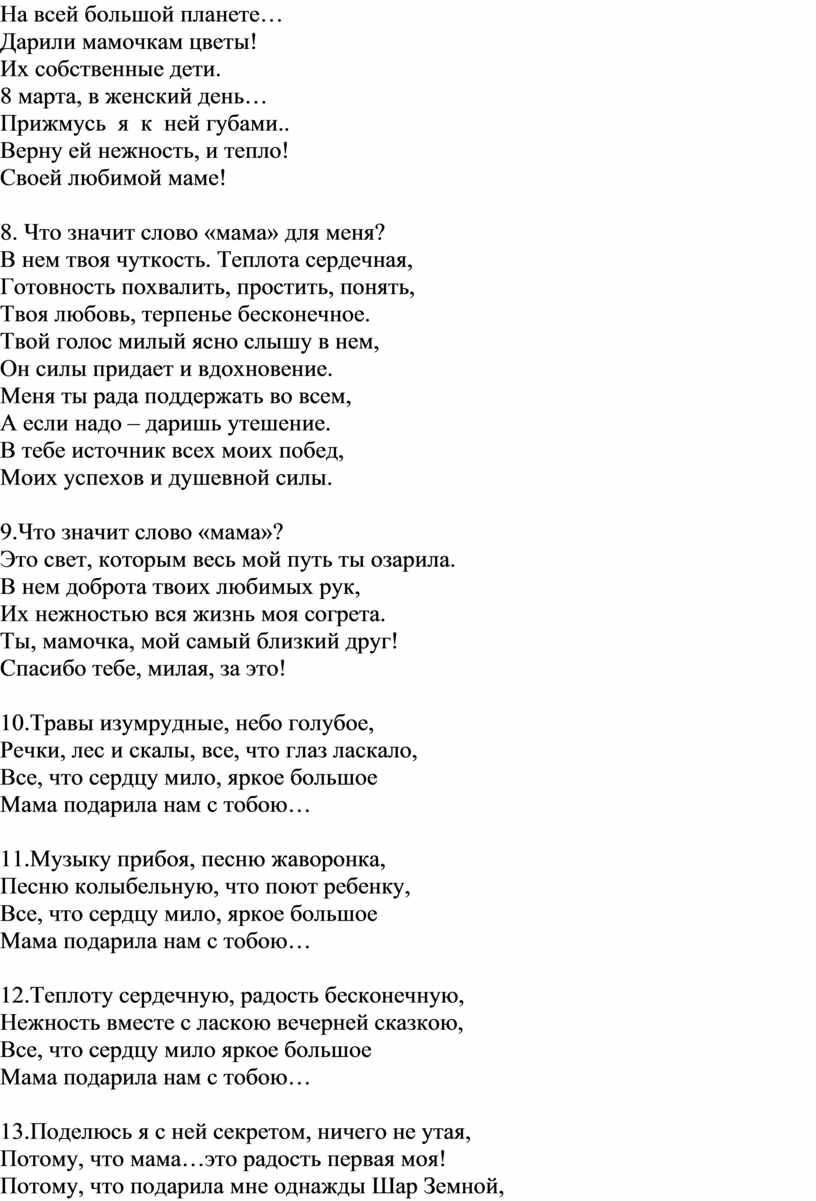 Мальчик 1: Сегодня для мамы все песни, все пляски, улыбки и смех.