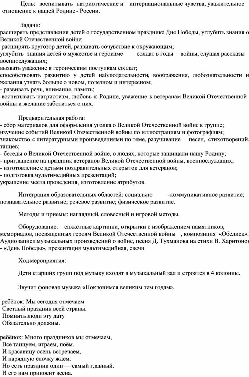 «ДЕНЬ ПОБЕДЫ!» ДЛЯ ДЕТЕЙ СТАРШЕГО ДОШКОЛЬНОГО ВОЗРАСТА