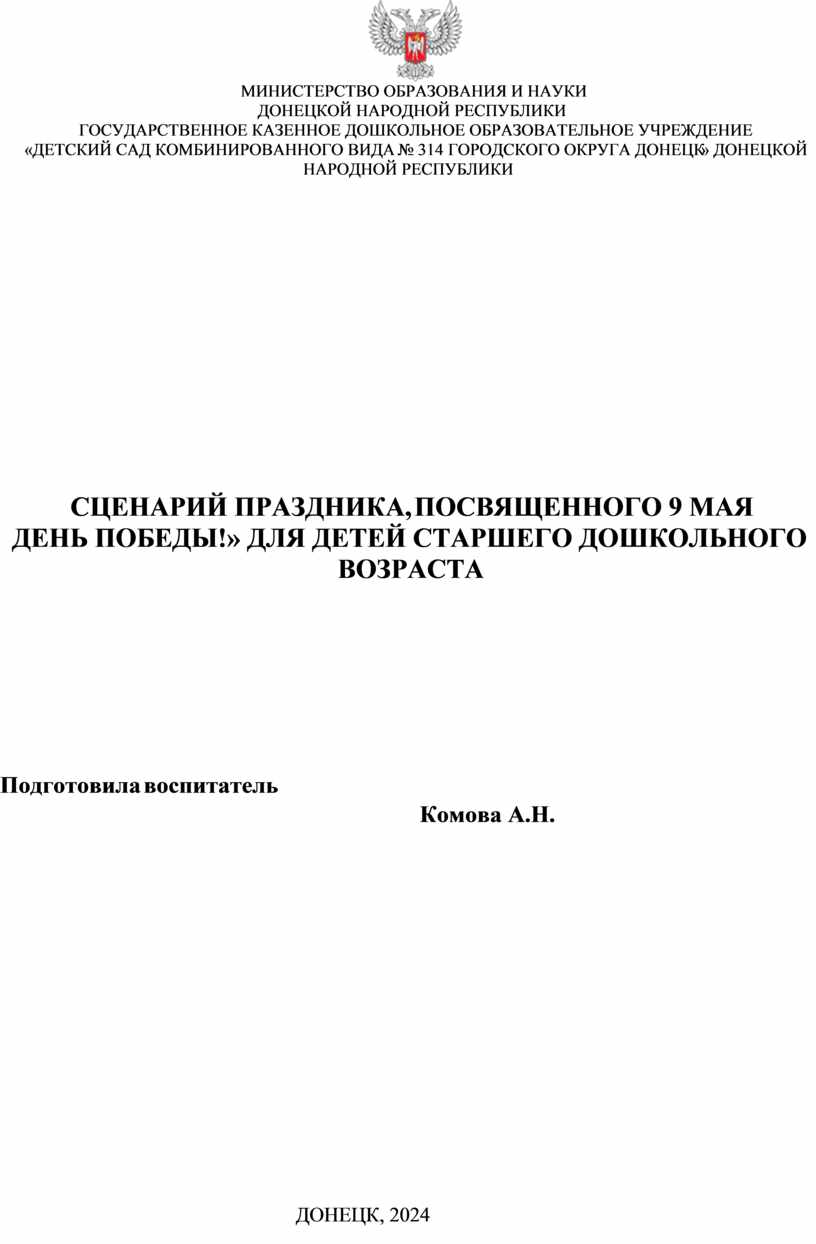 «ДЕТСКИЙ САД КОМБИНИРОВАННОГО ВИДА № 314 ГОРОДСКОГО ОКРУГА ДОНЕЦК» ДОНЕЦКОЙ НАРОДНОЙ РЕСПУБЛИКИ