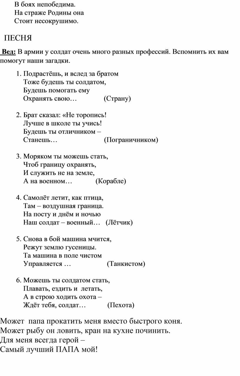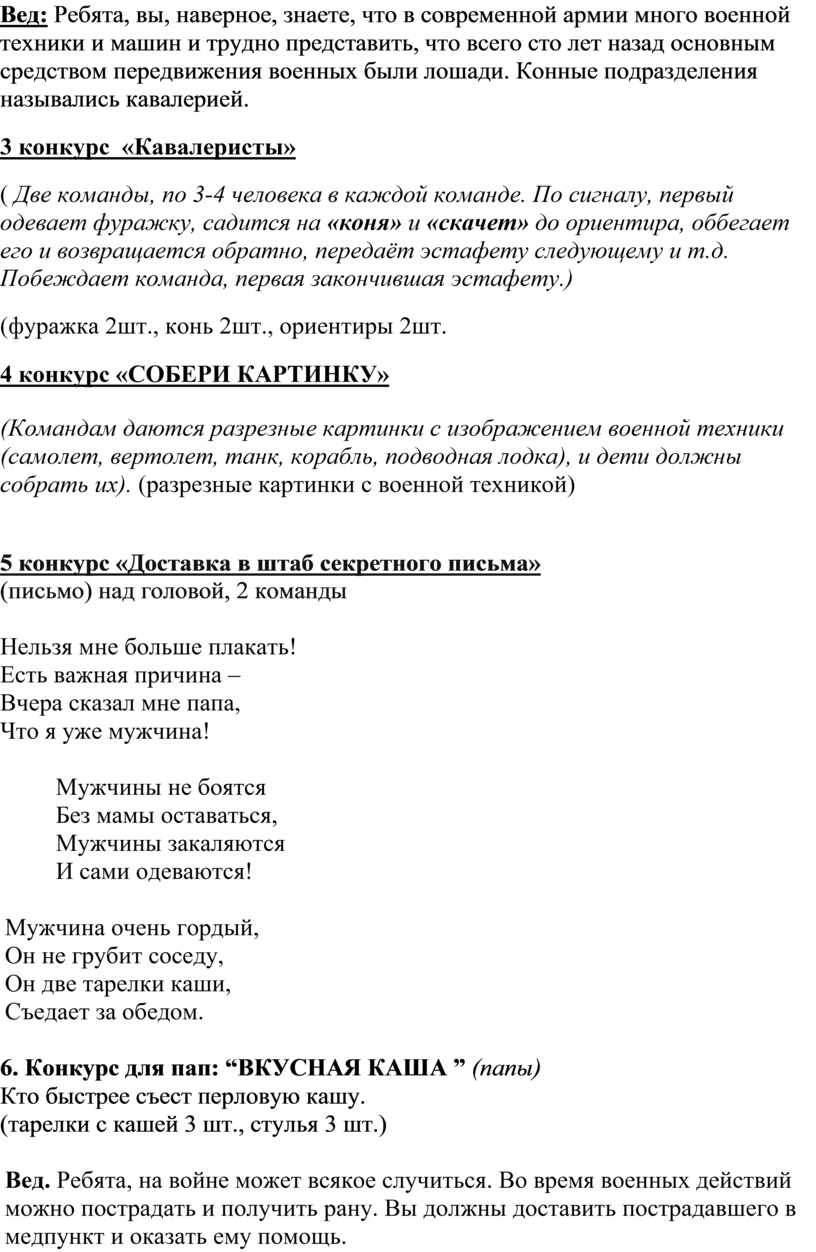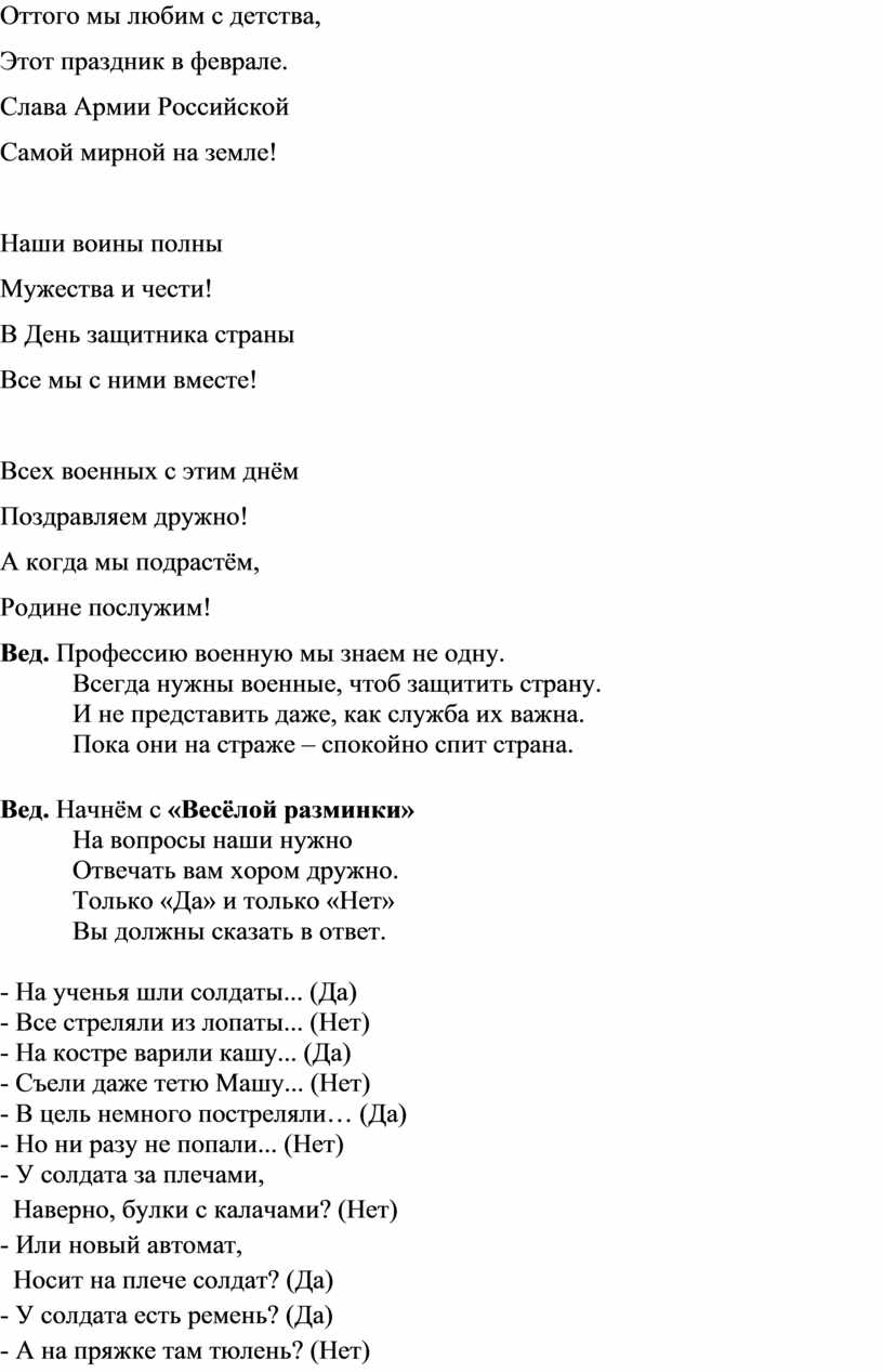Сценарий 23 февраля в детском саду
