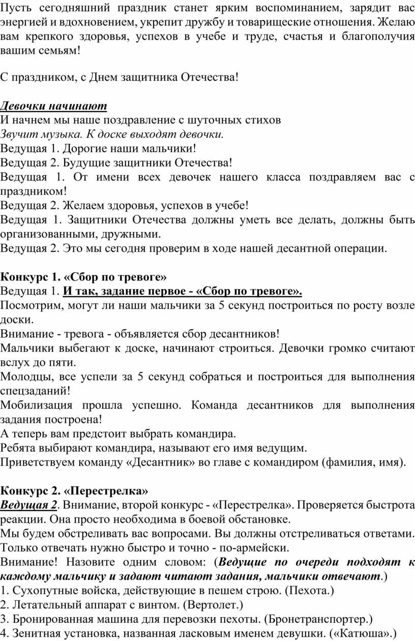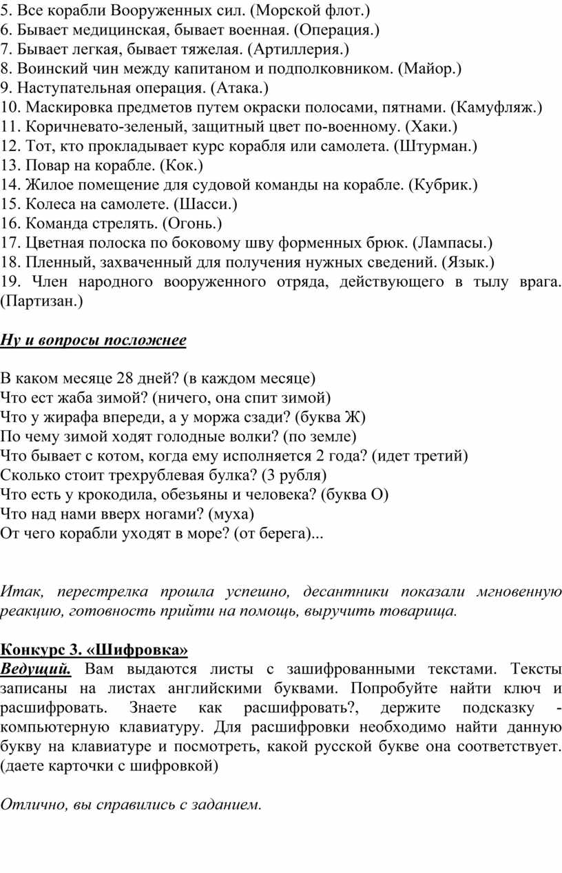 Ведущая. Всего (называет число) из 20. Не так уж и плохо. Будем считать, что испытание на меткость наши десантники тоже прошли успешно.