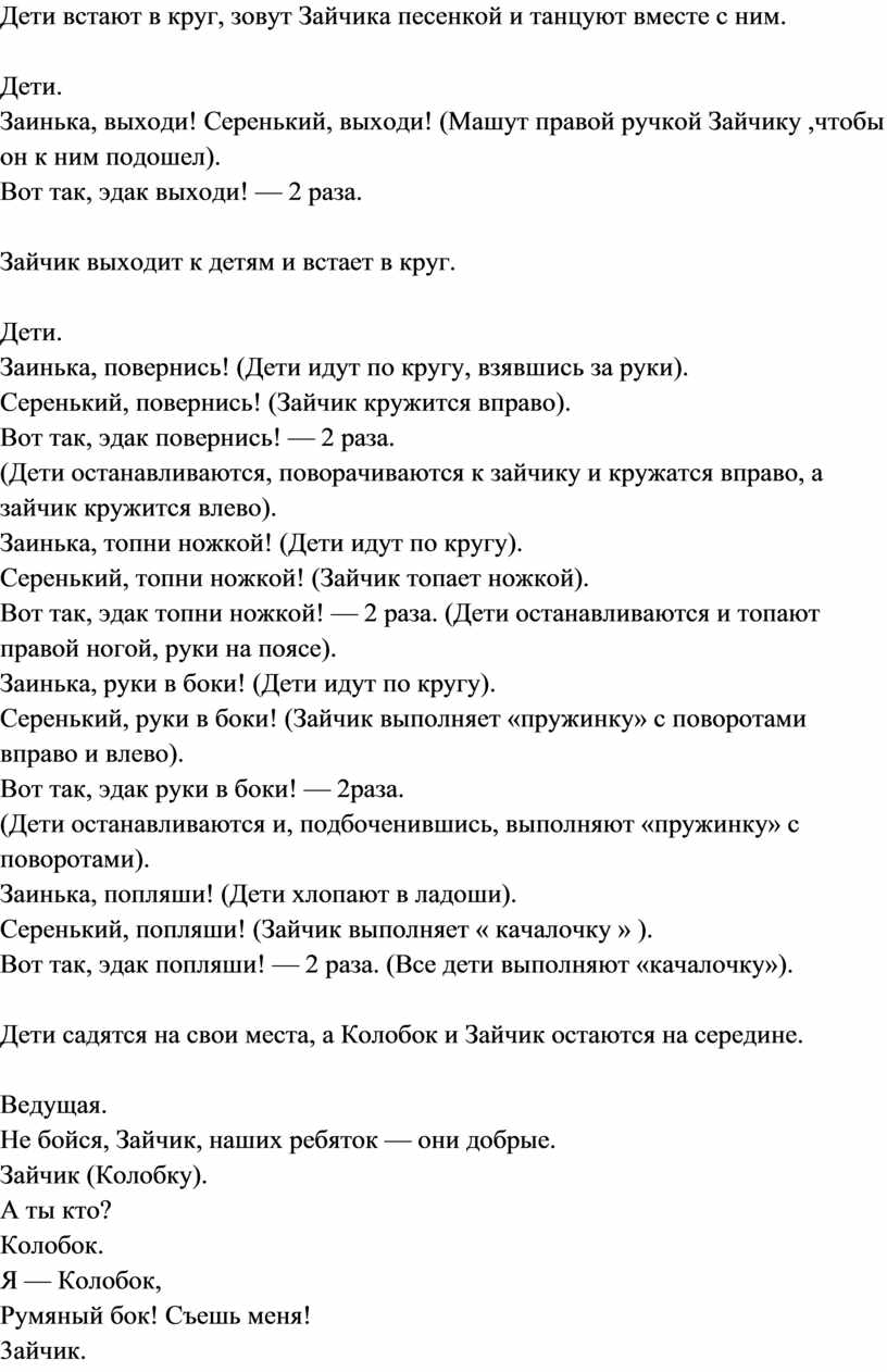 Колобок бежит под веселую песенку по залу. Дети поют «Песенку про Колобка».По
