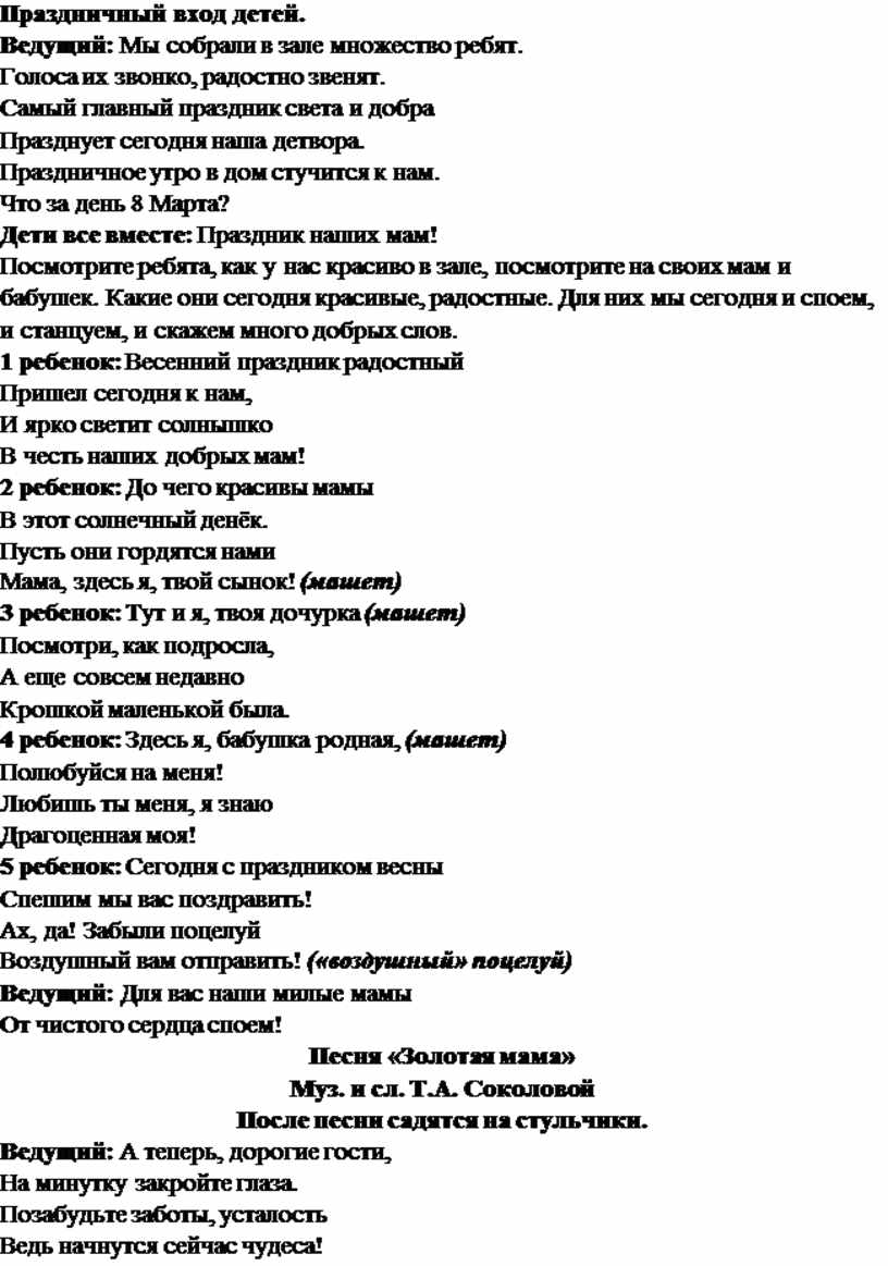 Сценарий праздника 8 Марта