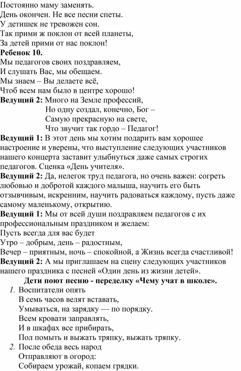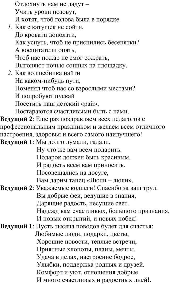 Ведущий 1. Да, что и говорить, День Педагога – это светлый праздник!