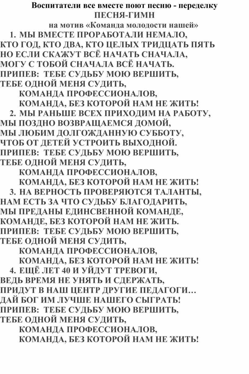 на мотив «Команда молодости нашей»