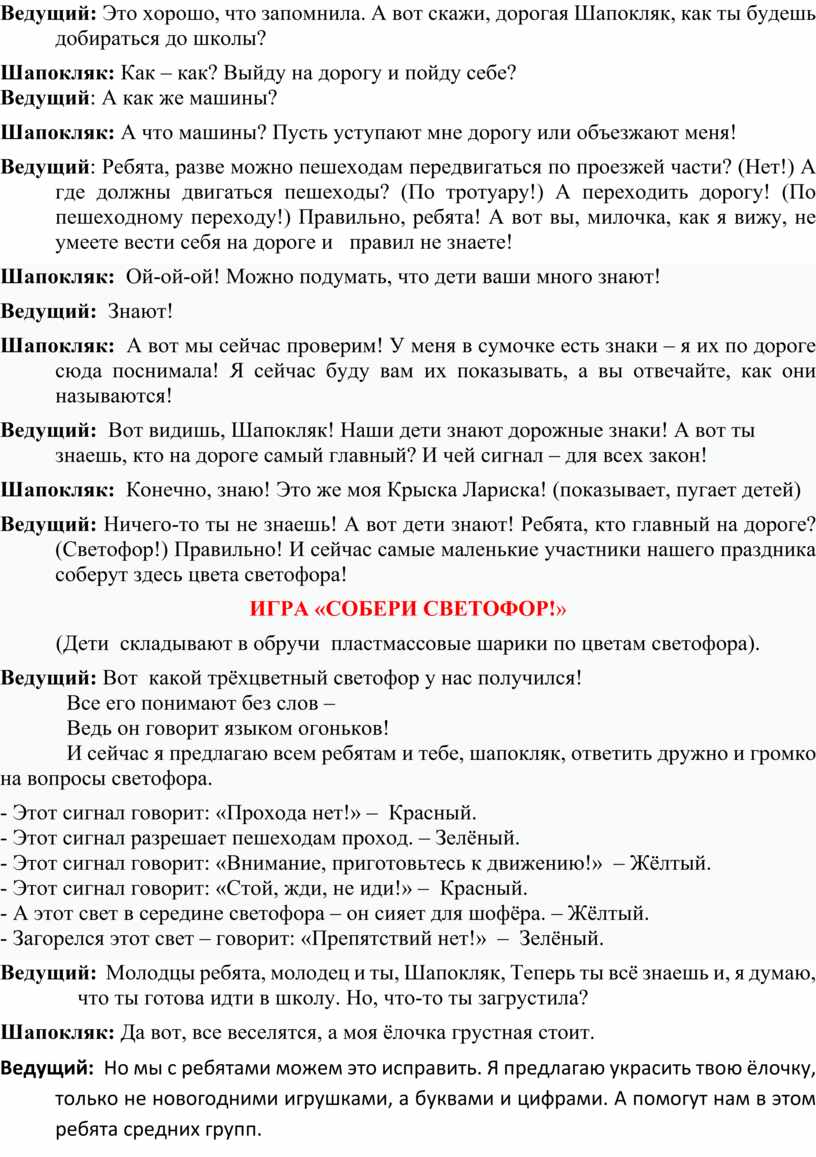 И сейчас я предлагаю всем ребятам и тебе, шапокляк, ответить дружно и громко на вопросы светофора.