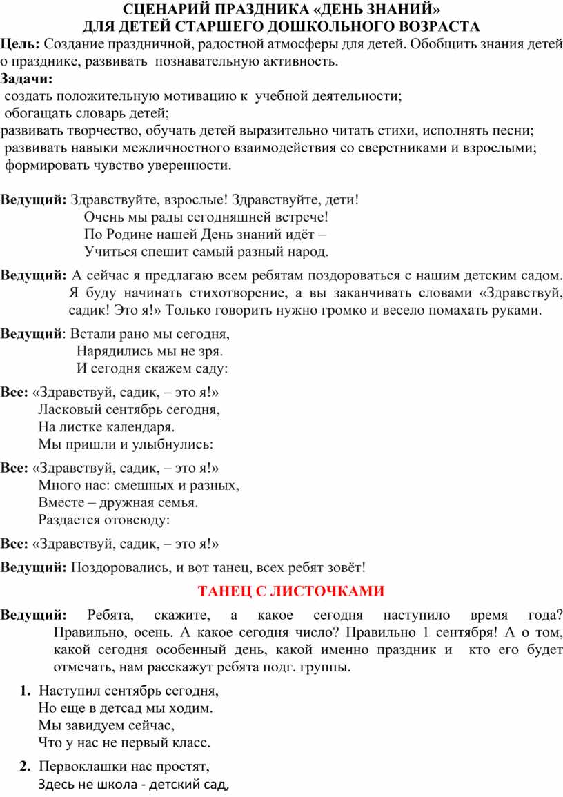 СЦЕНАРИЙ ПРАЗДНИКА «ДЕНЬ ЗНАНИЙ»