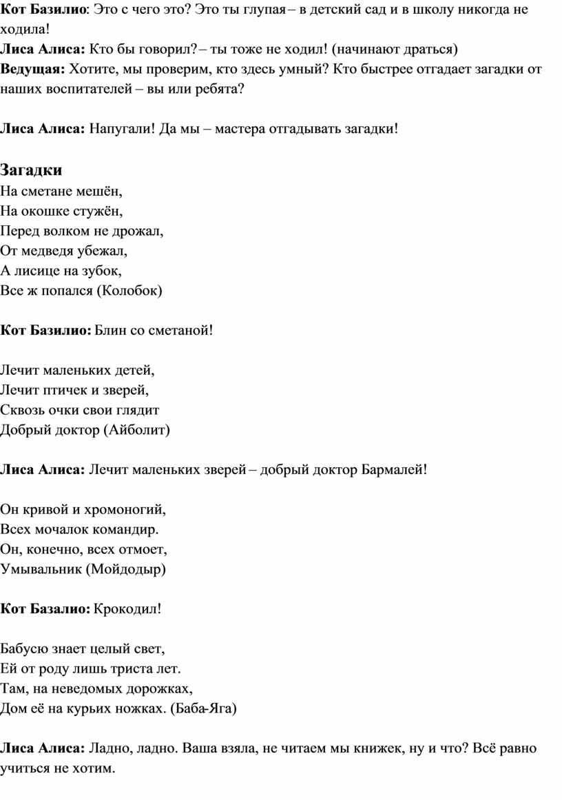 Кот Базилио: Это с чего это? Это ты глупая – в детский сад и в школу никогда не ходила!