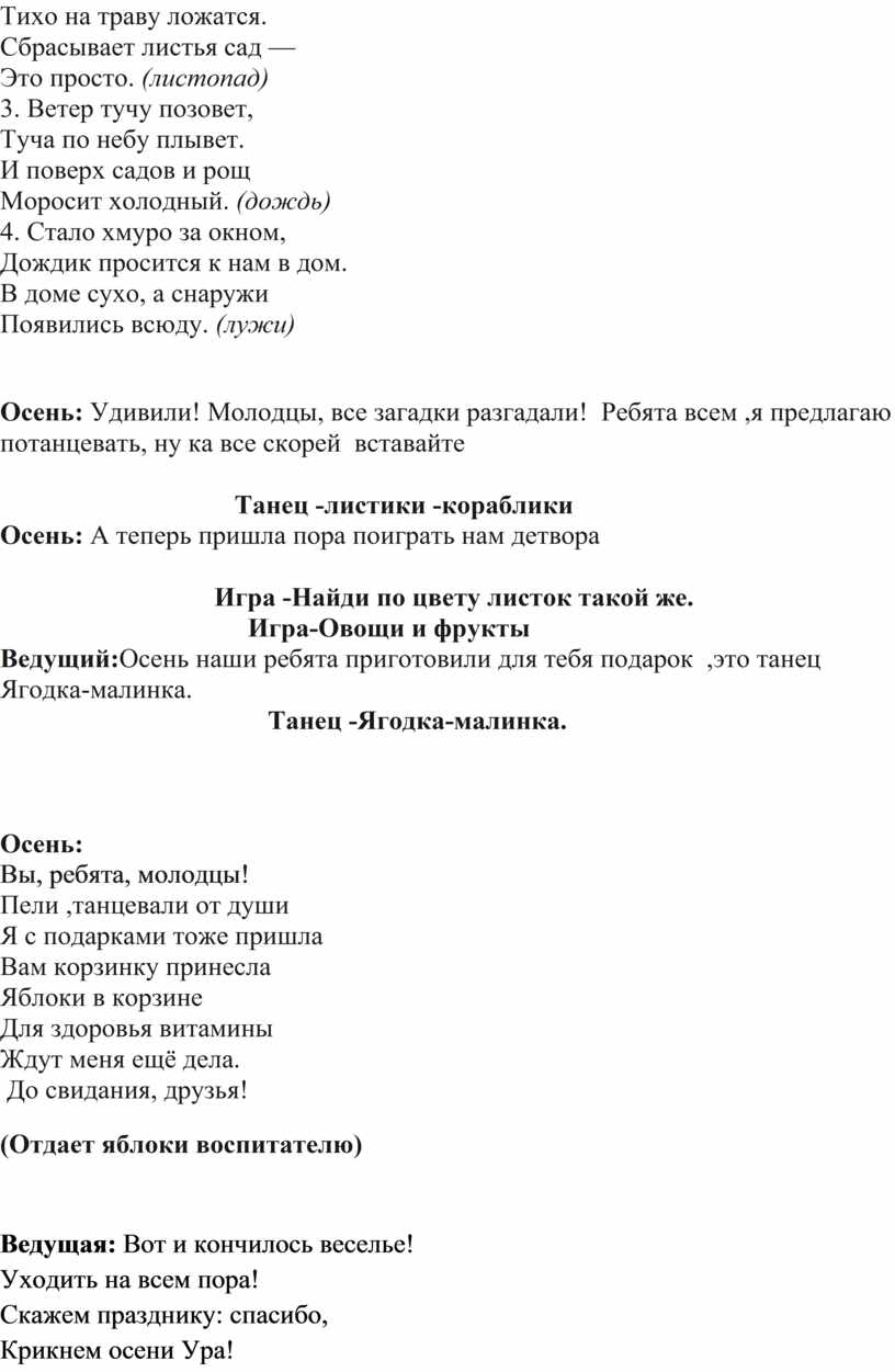 Ведущий:Осень наши ребята приготовили для тебя подарок ,это танец Ягодка-малинка.